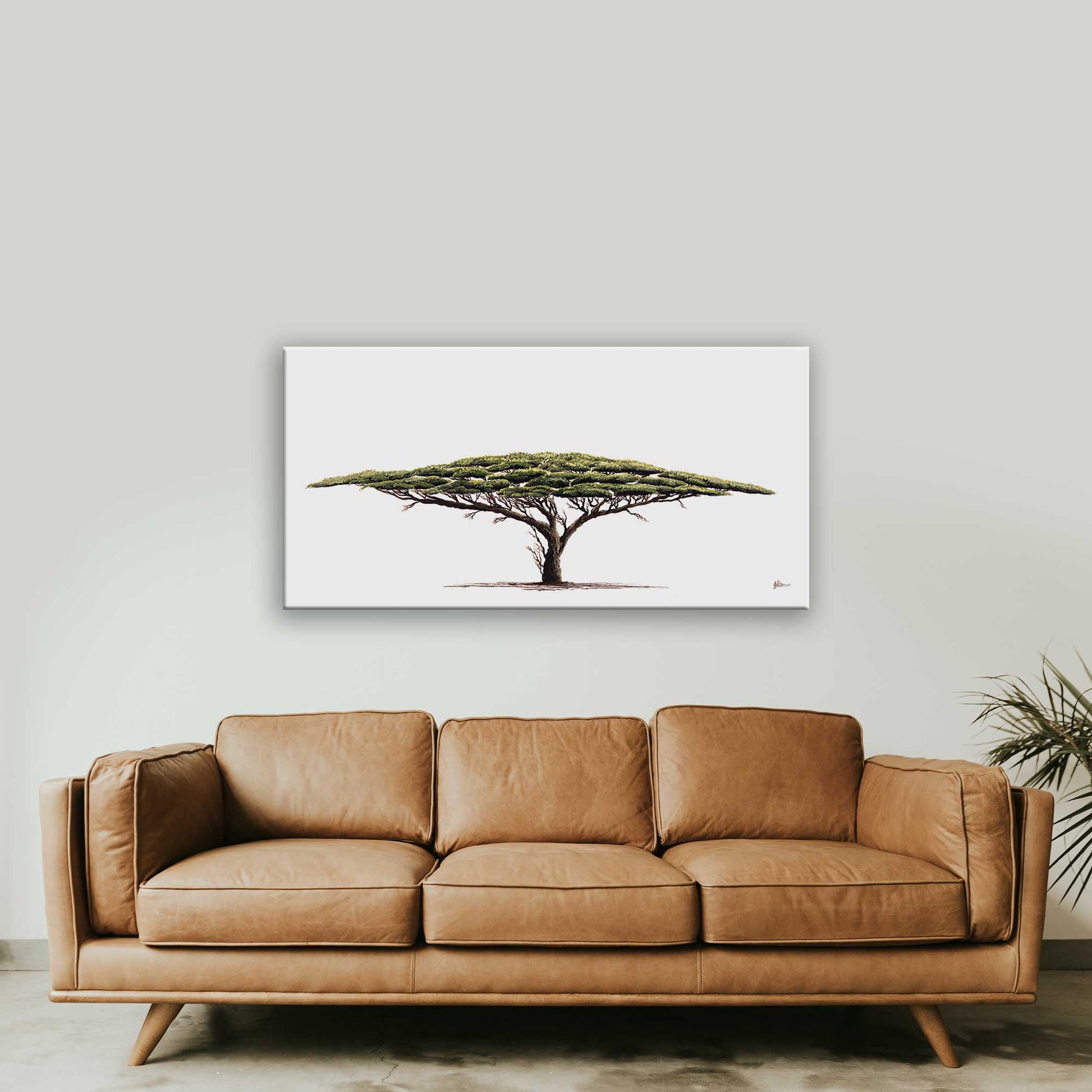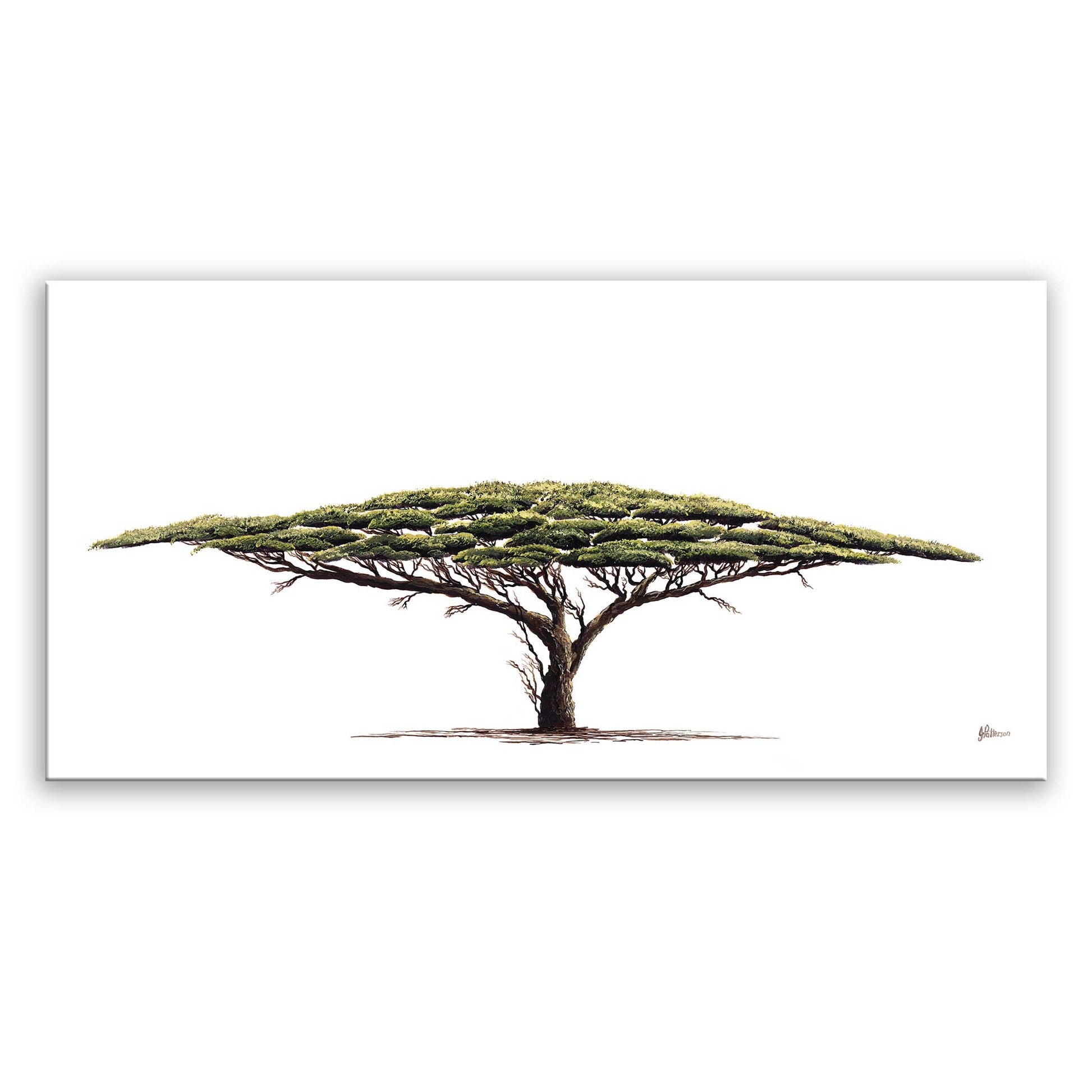 Experience the stunning beauty of nature with our Acacia Tree Canvas Print. This print, derived from an original by Johnathan Patterson, captures the intricate details of the Acacia tree in a large canvas size of 1100mm x 550mm.